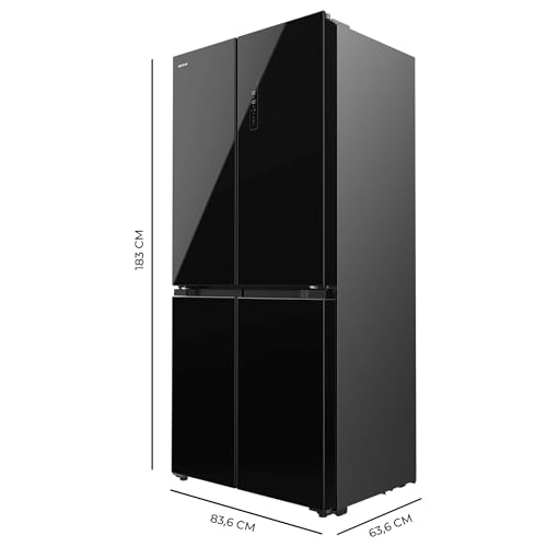Cecotec Frigorífico 4 Puertas 436L Bolero CoolMarket 4D 436 Black Glass E. 183cm Alto y 83,6cm Ancho, Compresor Inverter Plus, Total No Frost, Alarma Puerta Abierta, Fast Cooling y Freezing