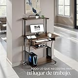 tectake® Mesa Ordenador, Madera y Acero, 3 Niveles de Almacenamiento, Escritorio pc, Muebles Oficina, Mesa Escritorio - 80 x 65,5 x 130,5 cm Madera Industrial Oscura, Rústica