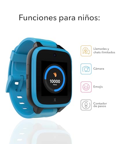 XPLORA XGO 3 - Teléfono Reloj 4G para niños (con SIM) - Llamadas, Mensajes, Modo Colegio, SOS, GPS, Cámara y Podómetro - Incluye 3 Meses de suscripción Gratuita (Azul)