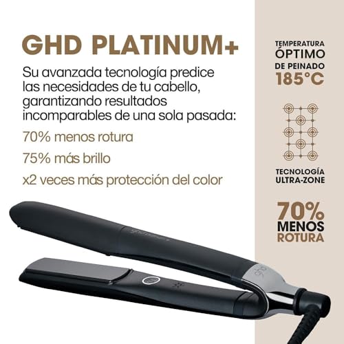 ghd Platinum+ Negra - Plancha de Pelo Profesional Inteligente, Cabello Más fuerte, Más Brillo y Protección del Color - Para todo Tipo de Cabello - (Enchufe Europeo)