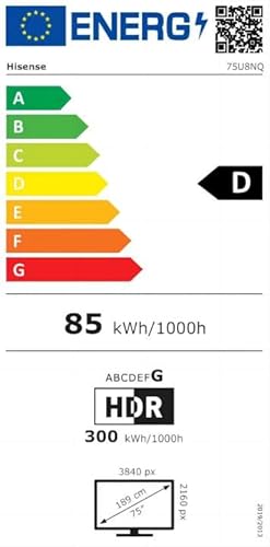 Hisense 75U8NQ - Mini-LED Televisor, 75 Pulgadas,con Quantum Dot Colour, 2.1.2 Sonido multicanal, Modo Juego de 144Hz VRR 240 fps, Dolby Vision IQ & Dolby Atmos, Procesador Hi-View Engine (Nuevo 2024)