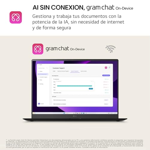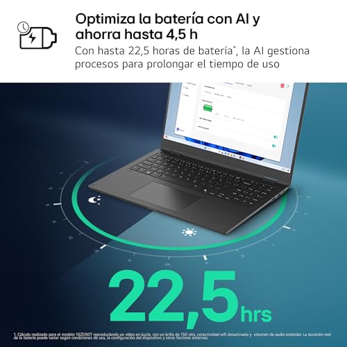 LG gram 16ZD90T.AX88B - Ordenador Portátil 16", Intel Core Ultra7 255H, 32 GB RAM, 1TB SSD, Pantalla IPS Antirreflejo (2560x1600), 1.199 g, 22.5 h de Autonomía, Free OS, Negro