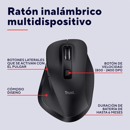 Trust Ratón inalámbrico multidispositivo Fyda. Negro