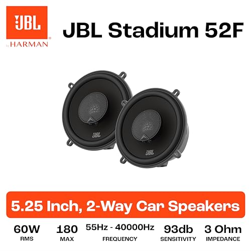 JBL Stadium 52F Altavoz coaxial de Coche 2 vías 5,25", 60 W RMS, 180 W Pico, 3 Ohm, 93 dB, 55 Hz–40 kHz, woofer Plus One, Tweeter Soft Dome, Sonido detallado