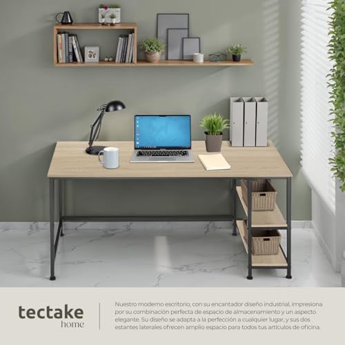 tectake® Mesa Escritorio con 2 Estantes Laterales, pies Ajustables, Moderno Escritorio para Ordenador, Mesa Oficina, fácil Montaje - 120 x 60 x 75,5 cm Madera Industrial Clara, Roble Sonoma