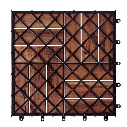 Suelo de exterior de madera de acacia certificada base de plástico resistente a todo tipo de clima jardín patio balcón accesorios marrón Acerenza