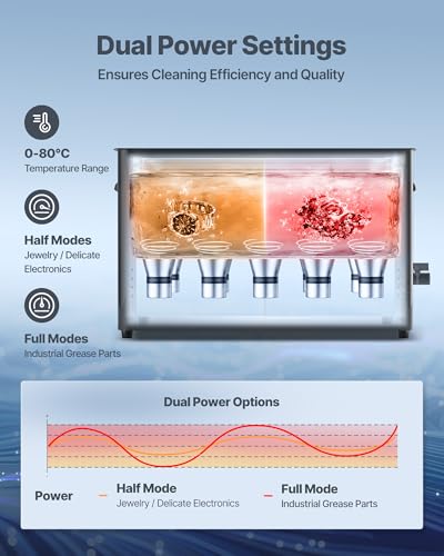VEVOR Limpiador Ultrasónico 30 L con Control de Perilla para Reloj, Joyas, Gafas
