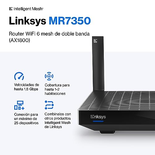 Linksys MR7350 router WiFi 6 mesh de doble banda (AX1800), funciona con el sistema Velop WiFi para todo el hogar, router WLAN con controles parentales por la aplicación de Linksys